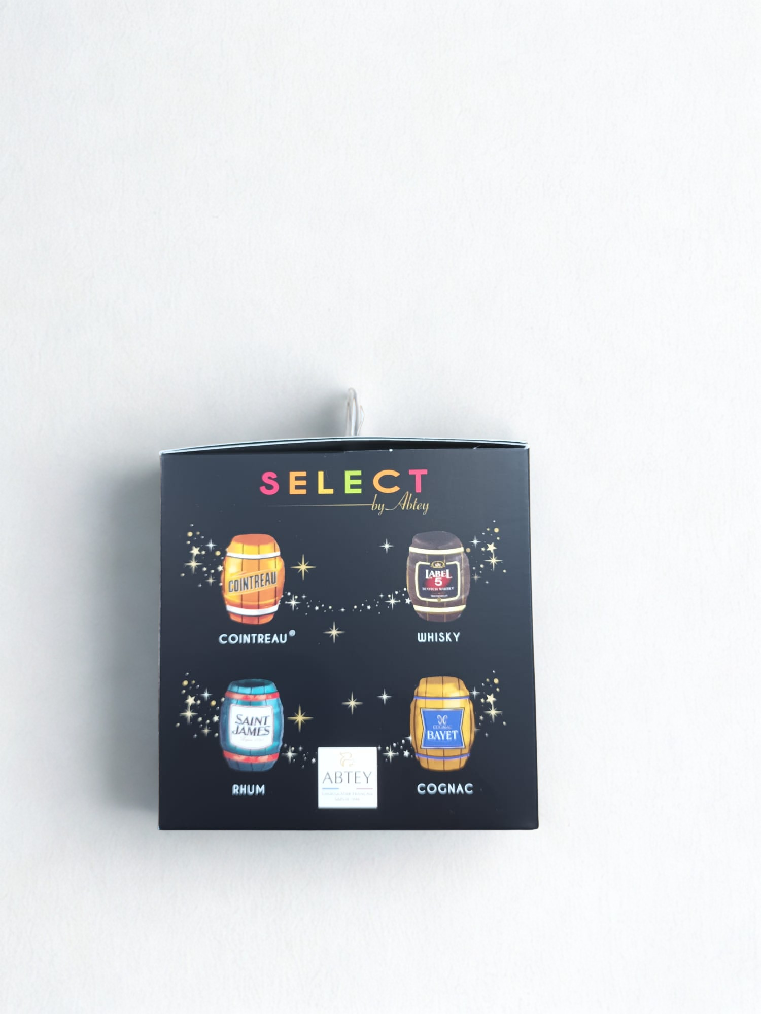 Cioccolatini con ripieno liquido cognac, whisky, rum e cointreau.